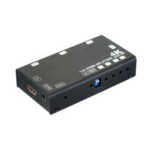 Разветвитель HDMI (1вх./4вых.); Разрешение до 1080p/36бит (Deep Color) и 4Kx2K (3840x2160/60Гц, YCbCr 4:2:0); Поддержка 3D и HDCP; Скорость передачи данных до 10,2Гбит/с; Расширенные настройки EDID; Вх. - HDMI(A)/Роз.2,1х5мм(DC5V). Вых. - HDMI(A)x4; DC5В /1000мА (БП в комплекте); -5°...+35°C; 115x25x62мм