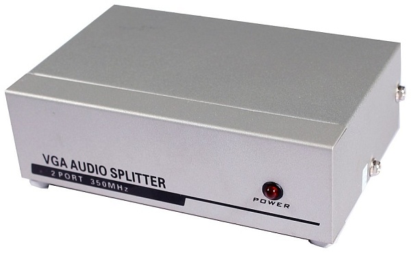 Разветвитель 1VGA+1Стерео Аудио вх./4 VGA+4 Стерео Аудио. Расстояние передачи – до 50 м; Разрешение: до 1920х1440, 60 Гц; Подключение VGA(15 pin D-sub), Стерео Аудио (3,5мм); DC 5В /2800мА (БП в комплекте); 200х42х75 мм