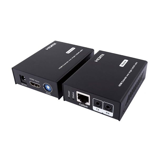 Комплект для передачи HDMI и ИК сигнала управления по одному кабелю витой пары CAT5e/6 до 50м. Разрешение до 1080p/24бит (Deep Color). Поддержка 3D. Скорость передачи данных до 6,75Гбит/с. Расширенные настройки EDID. Передатчик: Вх. - HDMI(A)/TRS3,5мм(ИК)/Роз.2,1х5мм(DC5В). Вых. - RJ45/TRS3,5мм(ИК). Приёмник: Вх. - RJ45/TRS3,5мм(ИК)/Роз.2,1х5мм(DC5В). Вых. - HDMI(A)/TRS3,5мм(ИК); DC5В/1000мА - 2шт( в комплекте); 65x24.1x85мм (каждого устройства); -5…+35°С.