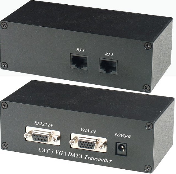 Комплект (передатчик+приёмник) для передачи VGA и RS-232 по кабелю UTP CAT5 до 135м; Разрешение до 1280х1024; DC 5В /350мА (БП 2 шт в комплекте); -40°...+55°C; Передатчик 133х44х70мм, Приемник 133х44х70мм