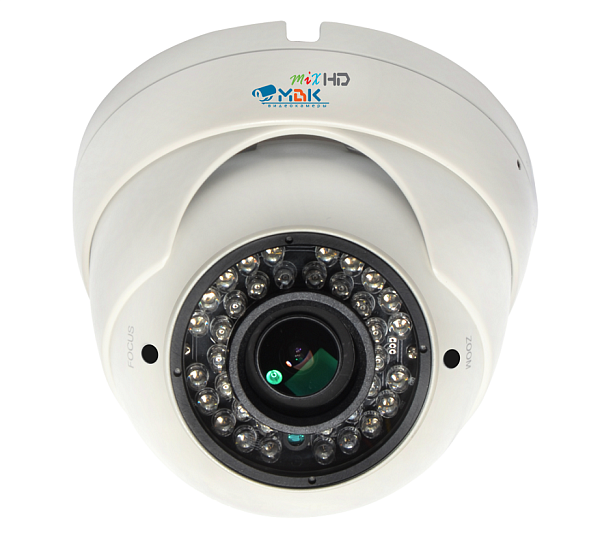 Видеокамера 4х форматная (AHD/TVI/CVI/960h) Mix-HD  цветная купольная  уличная антивандальная со встроенной ИК подсветкой (механический ИК фильтр), ДЕНЬ/НОЧЬ; 1/2,8'' CMOS Sony EXMOR 2МП(1920x1080) ; 0,05/0 лк (ИК-подсветка) F1.2; f=2,8-12 мм; дальность ИК подсветки 30 м; Экранное меню: AGC, AWB, BLC, D-WDR, DNR, Defog, настройка с джойстика на видеокабеле или удаленно с видеорегистратора ; S/N: 52 dB;  DC12 В /400 мА; ∅119х100 мм;  -45…+50°C.; IP-66/IK-10; Переключение между режимами AHD/HD-TVI/HD-CVI/960h с помощью съемного джойстика на кабеле