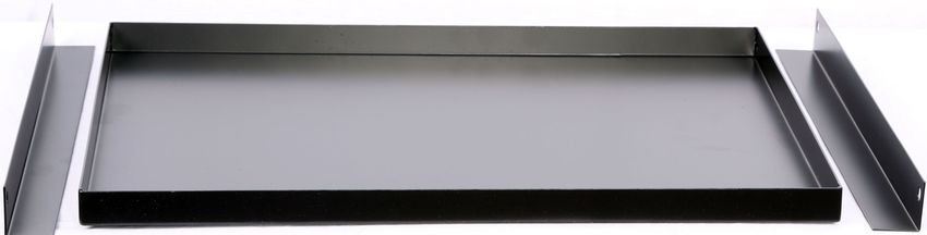 Комплект поддона под АКБ МЕТА 9924 состоит из собственно поддона, двух стальных направляющих, четырех винтов М5, и четырех кузовных гаек М5.