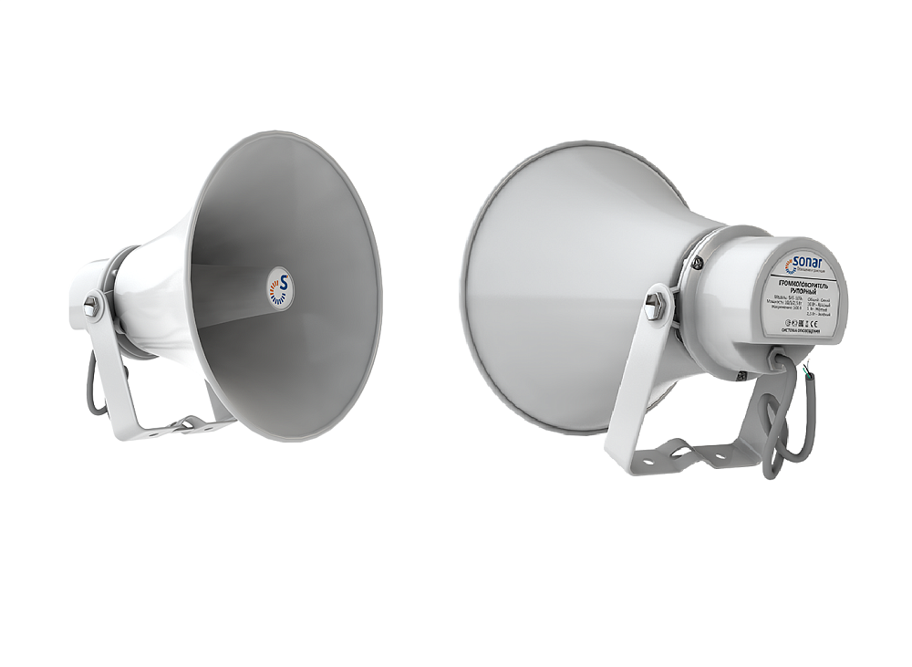 Громкоговоритель рупорный трансляционный, 100В, 20/10Вт, 350Hz-8kНz, 117 дБ, 249х290 мм, 2 кг, алюминиевый корпус.