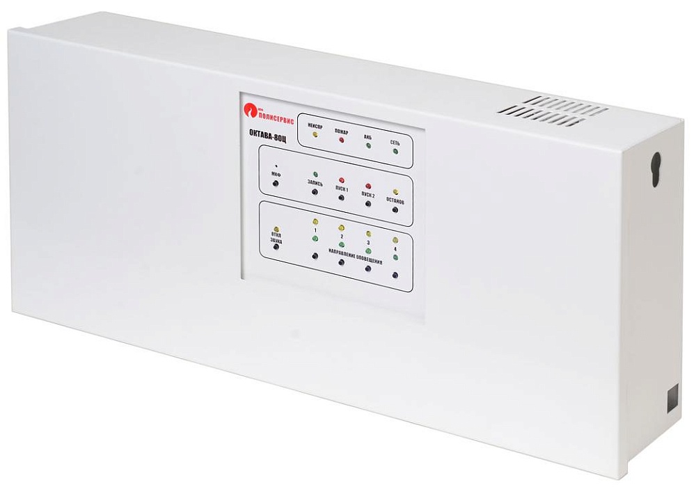 Блок речевого оповещения на 4 направления с контролем линии; 80Вт; 100 В; до 4х речевых сообщений общей длительностью не менее 2 мин. (2 из которых возможно перезаписать); воспроизведение сигналов ГО и ЧС; 1 линейный вход; встроенный микрофон (возможно подключить внешний).