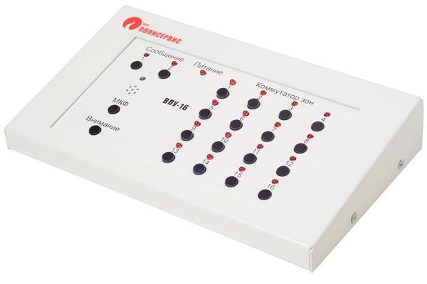 Выносной пульт управления для ПУО Октава-100Ц, 16 зон, RS-485, встроенный микрофон, питание от ПУО, IP41, +5...+40°C, 200х120х36 мм