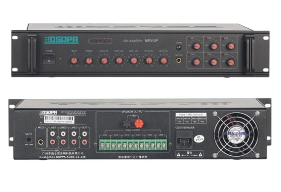 Усилитель, 6 зон c регулировкой уровня выходного сигнала, 120 Вт/100В, 2 микр., 3 Aux входа, 1 Aux вых., питание 220В