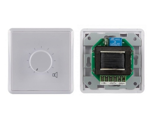 Регулятор громкости (аттенюатор) 160 Вт/100 В, реле принудительного включения, 80 х 80 х 74 мм, 0,29кг.