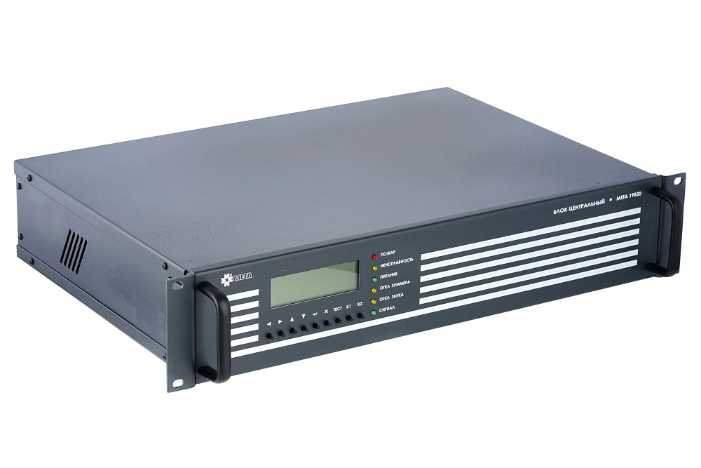 МЕТА 19830 Центральный блок системы речевого оповещения на 8 зон, расширение до 40зон, до 9 микрофонных пультов, RS-485, ГО и ЧС, длина линий связи с пультом до 1000м, вых. напряжение линий 100В.