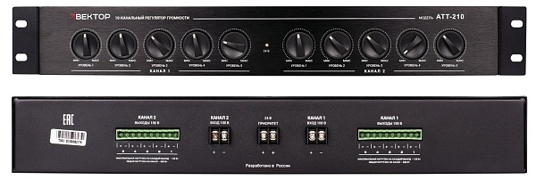 Пассивный 10-зонный регулятор громкости (блок аттенюаторов). Размеры 483х44х200 мм. Вес 4,5 кг