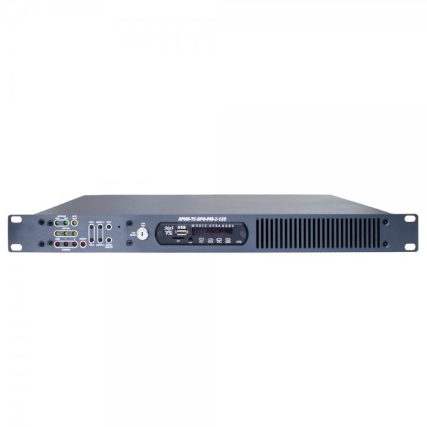 2х120 Вт, 100 В, 2 зоны, питание 220 В, СОУЭ 3 и 4 тип, ГО и ЧС, MP3, USB/ micro SD, FM радио, 5 речевых сообщений, 100 сек., кол-во БР - 50 шт., кол-во оповещателей - 2х120 шт., встроенный РИП 24 В, 430х45х275 мм, IP41, -10…+55°С