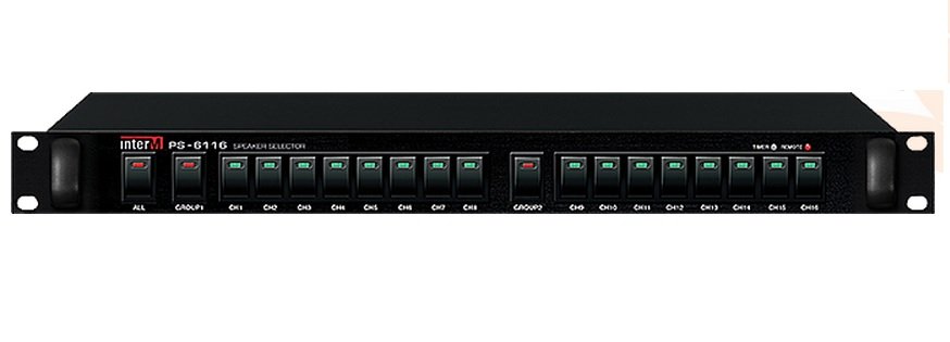 Селектор акустических систем, до 16 зон оповещения с ручным управлением. Для увеличения количества зон необходимо использовать несколько блоков PS-6116