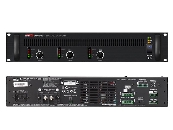 Трехканальный трансляционный цифровой усилитель мощности, 3 х 300 Вт, 50-20000 Гц, 482×88×480 мм.