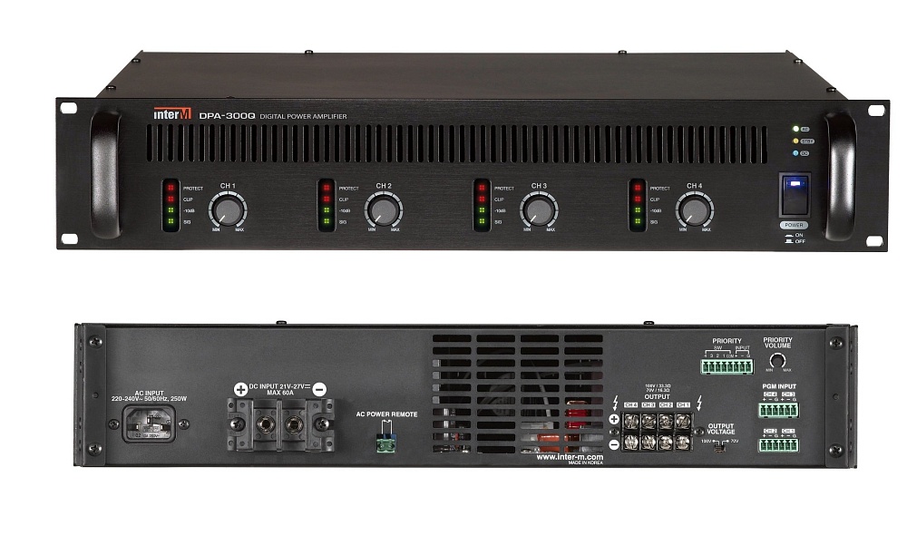 Четырехканальный трансляционный цифровой усилитель мощности, 4 х 300 Вт