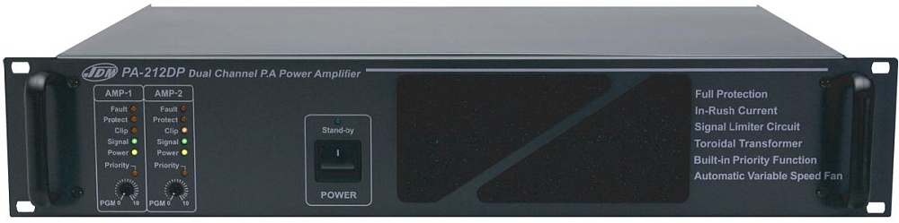 Усилитель мощности 2-х канальный 2х120 Вт, 100 В, с приоритетным входом, встроенным лимитером, многоступенчатой защитой, индикатором неисправности