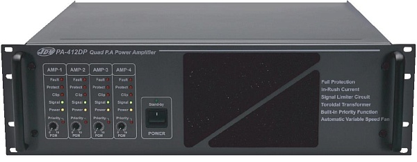 Усилитель мощности 4-х канальный 4х120 Вт, 100 В, с приоритетным входом, встроенным лимитером, многоступенчатой защитой, индикатором неисправности