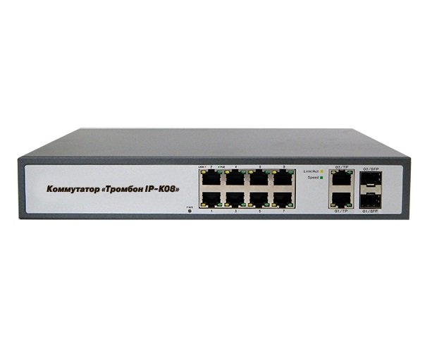 Коммутатор сетевой, 8 портов POE (IEEE802.3af/at), неуправляемый. До 30Вт на порт, двумя LAN-портами совмещенными c двумя оптическими SFP-портами. Суммарное PoE питание до 120Вт. Исполнение в металлическом корпусе, IP20, комплект крепления в 19" стойку или шкаф. Питание от сети 220В.