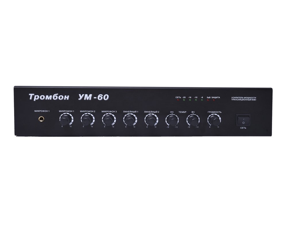 Усилитель малой мощности; питание от внешнего источника - 24В и 220В; 60Вт; 3 микр./2 лин.; 30/100/120 В; 50-10000 Гц