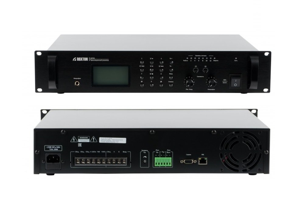 IP-усилитель, 60 Вт, 1 микр.+ 1 лин. вход, запуск mp3-проигрывателя, 2U