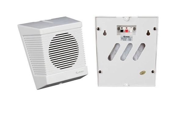 Настенный громкоговоритель компактный, мощность 10 Вт/5 Вт - 100В. Корпус пластик, цвет - белый, 162х196х86 мм