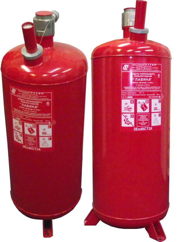 Модуль порошкового пожаротушения; стационарный; с принудительным запуском; взрывозащищенный 2ExdsIICT3Х; под трубную разводку условным диаметром 50 мм, протяженностью до 20 м, высота подъема до 12 м; вместимость корпуса 95 л; масса огнетушащего порошка 80 кг; защищаемая площадь до 128 м.кв. (для пожара класса А); защищаемый объем до 192 м.куб. (для пожаров класса А); U-пуск.9...27 В; I-пуск. не более 500...800 мА; t-раб.-40...+50°C; 1100х555х445 мм.