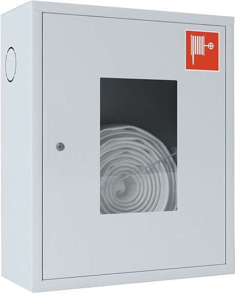 Шкаф пожарный для 1 рукава, навесной, открытый, петли слева, с почтовым замком, 540х650х230 мм. Белого цвета. Корзина для пожарного рукава в комплекте.