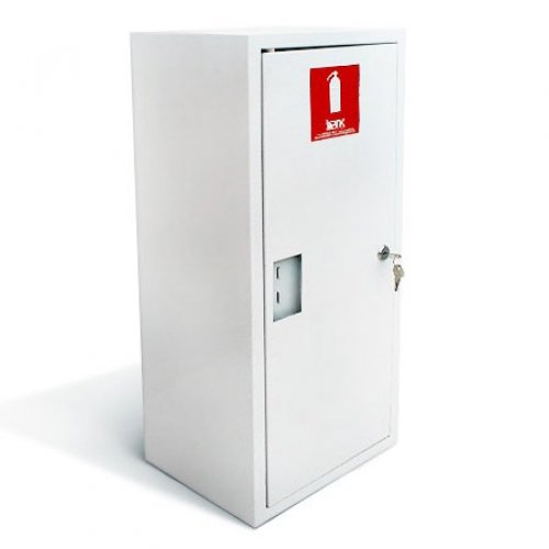Шкаф пожарный для 1 огнетушителя (6...12 кг), навесной, закрытый, петли справа, с почтовым замком, 300х730х220 мм. Белого цвета