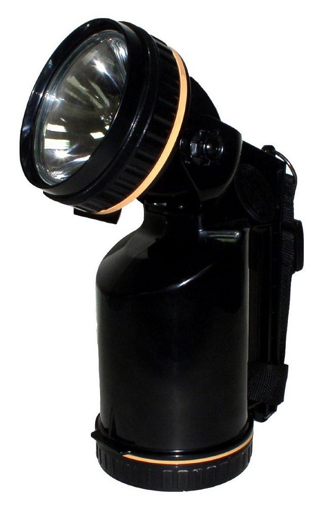 Фонарь групповой. Поворотная фара, кнопка включения без фиксации, регулировка силы света (кнопкой), индикация уровня заряда аккумулятора, галогенная лампа (2 шт.), АКБ 6 В/6 Ач, время непрерывной работы 4-8 ч. В комплекте: аккумуляторная батарея, ремень, паспорт