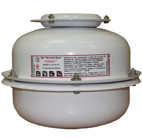 Модуль порошкового пожаротушения для тушения пожаров классов А, В, С и электрооборудования, находящегося под напряжением в комплекте с сигнально-пусковым устройством УСПАА-1 v5; вместимость корпуса 4.7 л, время действия 1 с, высота установки 1...6 м, защищаемая площадь до 78 кв.м; t-раб.-50...+50°С, 280х210 мм, 8.2 кг