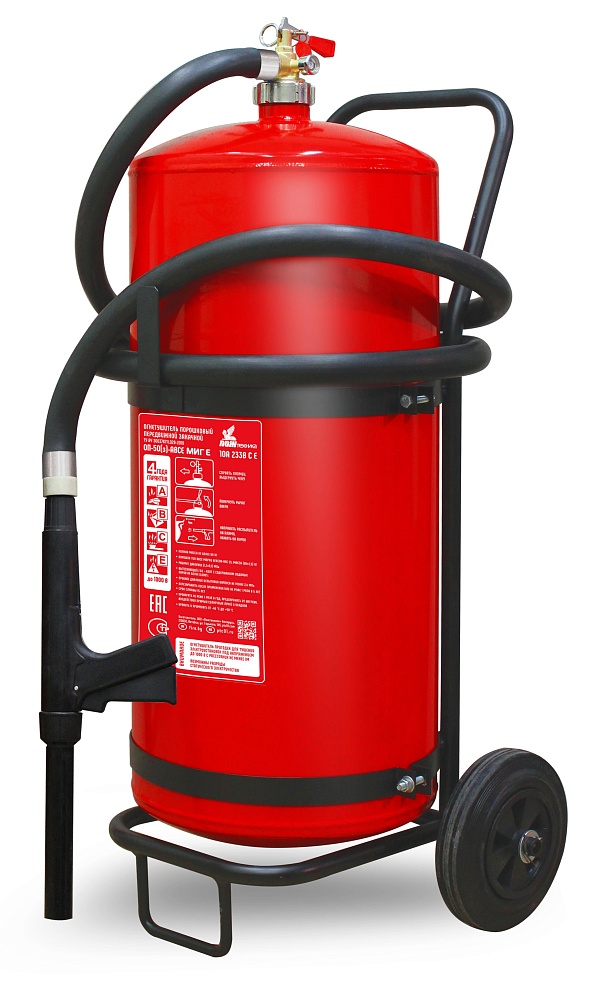 Огнетушитель порошковый, огнетушащая способность 10А, 233В-3, масса огнетушащего вещества 50 кг, объем баллона 62 л, продолжительность подачи ОТВ 20 сек, t_раб.-50…+50°С, 1000х330 мм, 72 кг
