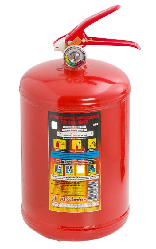 Огнетушитель порошковый закачной, предназначен для тушения пожаров классов А, В, С, Е, масса заряда 3 кг
