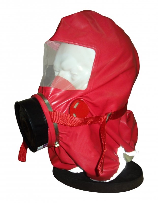 Газодымозащитный комплект одноразового действия, время защитного действия не более 30 минут. Состоит из огнестойкого капюшона с прозрачной смотровой пленкой и герметично соединенного с ним фильтрующе-сорбирующего патрона (ФСП).