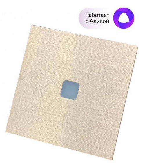 Сенсорный 1-клавишный выключатель с стеклянной панелью; врезной, монтаж в станд.подрозетник; работает в приложении Sibling, работает с Алисой®; вкл/выкл свет по команде, расписанию или от другого датчика Sibling; Wi-Fi, 2.4 ГГц, 802.11 b\g\n, U-раб. 220 В, I-коммут. 10 А, IP20, t-раб. 0...+40℃, габ.размеры 86х86х25 мм. Цвет "золото"