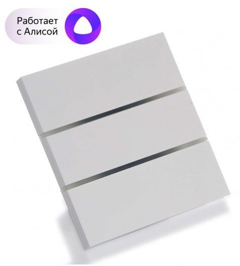 Сенсорный 3-клавишный выключатель с стеклянной панелью; врезной, монтаж в станд.подрозетник; работает в приложении Sibling, работает с Алисой®; вкл/выкл свет по команде, расписанию или от другого датчика Sibling; Wi-Fi, 2.4 ГГц, 802.11 b\g\n, U-раб. 220 В, I-коммут. 10 А, IP20, t-раб. 0...+40℃, габ.размеры 86х86х25 мм. Цвет "серебро"