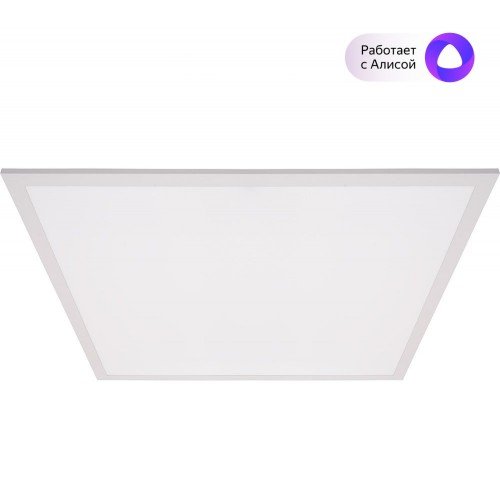 Светильник (накладной/встраиваемый) светодиодный, регулировка спектра RGB, яркости и цветовой температуры в приложении Sibling, работает с Алисой®; вкл/выкл свет по команде, расписанию или от другого датчика Sibling; Wi-Fi, 2.4 ГГц, 802.11 b\g\n, U-раб. 220 В, мощность 36 Вт, свет.поток 3240 лм, цвет.температура 3000...6500 K, IP44, t-раб.–10...+50°C, габ.размеры 595х595х65 мм.