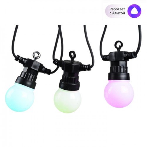 Светильник подвесной садово-парковый уличный, 10 ламп на проводе длиной 10 м, регулировка спектра RGB, яркости и цветовой температуры в приложении Sibling, работает с Алисой®; Wi-Fi, 2.4 ГГц, 802.11 b\g\n, U-раб. 220 В, мощность 0.6 Вт каждой лампы, IP65