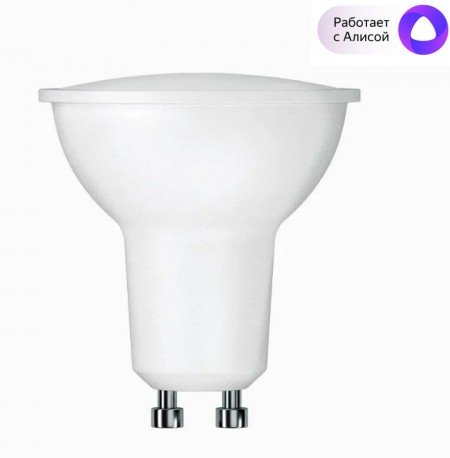 Умная RGB лампа, цоколь GU10, регулировка спектра RGB, яркости и цветовой температуры в приложении Sibling, работает с Алисой®; вкл/выкл свет по команде, расписанию или от другого датчика Sibling; Wi-Fi, 2.4 ГГц, 802.11 b\g\n, U-раб. 220 В, мощность 5 Вт, свет.поток 400 лм, цвет.температура 2700...6500 K, IP20, t-раб. 0...+40°C