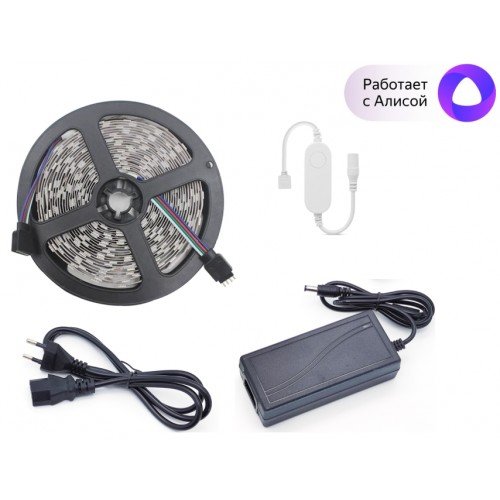 Умная светодиодная RGB лента на клейкой основе, длина 10 м, регулировка спектра RGB, яркости и цветовой температуры в приложении Sibling, работает с Алисой®; Wi-Fi, 2.4 ГГц, 802.11 b\g\n, U-пит. 24 В, мощность 7 Вт/м, свет.поток 810 лм, IP20, t-раб. 0...+40°C. В комплекте блок питания, контроллер. Пульт ДУ приобретается отдельно
