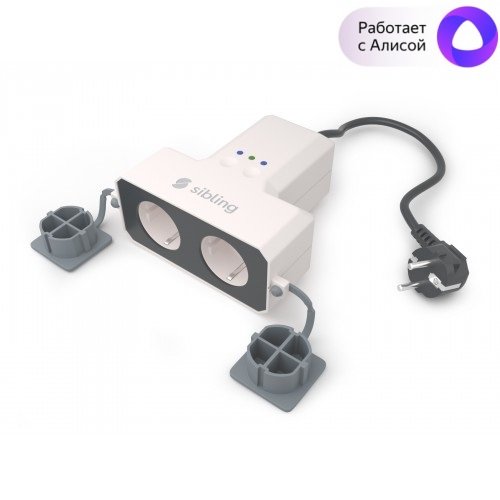 Розетка уличная влагозащищенная на 2 поста с раздельным управлением, работает в приложении Sibling, работает с Алисой®; вкл/выкл нагрузку по команде, расписанию или от другого датчика Sibling; Wi-Fi, 2.4 ГГц, 802.11 b/g/n, U-раб. 220 В, I-макс. 10 А, IP44, t-раб. -10...+40℃, габ.размеры 110х130х50 мм