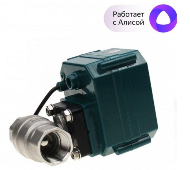 Шаровый кран на трубу 1/2", для горячей и холодной воды; работает в приложении Sibling, работает с Алисой®; питание 5 В (через адаптер), стальной, IP67. Для работы необходим шлюз ZigBee.