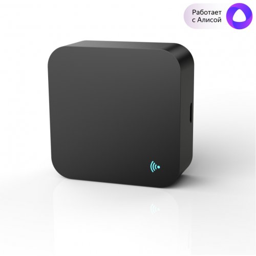 Умный инфракрасный пульт для работы с телевизорами и кондиционерами, посылает сигналы на 360 градусов и не имеет слепых зон, работает в приложении Sibling, работает с Алисой®; Wi-Fi, 2.4 ГГц, 802.11 b\g\n, подключается через разъем micro-USB (адаптера нет в комплекте)