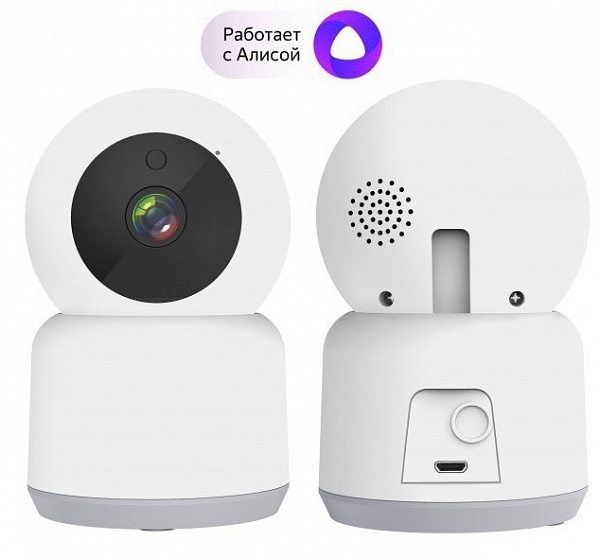 Беспроводная 2Мп внутренняя поворотная IP-камера c ИК-подсветкой до 5 м; работает в приложении Sibling, работает с Алисой®, встроенный микрофон/ динамик; Wi-Fi, 2.4 ГГц, 802.11 b/g/n, обнаружение движения, слот для microSD карты до 128 Гб (в комплект не входит); питание 5 В/ 1 А (через кабель microUSB), IP20, t-раб. -10°C ...+60°C; габ.размеры 70х112 мм. В комплекте кронштейн, кабель и адаптер питания.