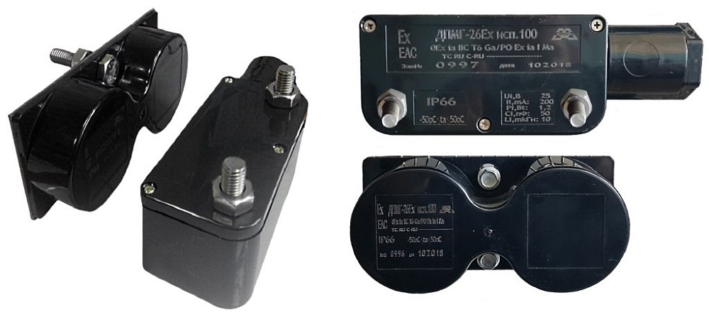 Датчик положения магнитогерконовый взрывозащищенный; 0Ex ia IIC T6 Ga/РО Ex ia I Ma; расстояние между блоками: 100 мм (контакты замкнуты), 160 мм (контакты разомкнуты); IP66/IP68, t-раб.-50...+50°C, блок геркона 160х55х52 мм, блок магнитов 287х100х41.5 мм