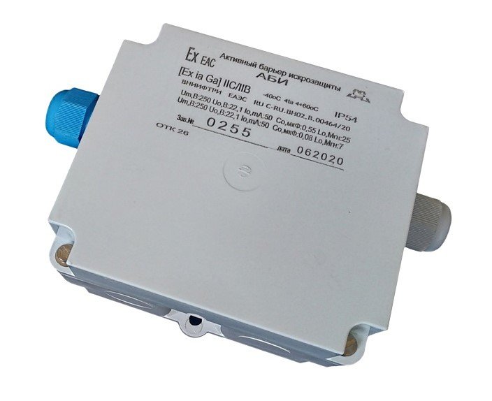 Активный барьер искрозащиты на 1 шлейф, для пожарных или охранных извещателей с НЗ или НР контактами, а также извещателями, питаемыми по шлейфу сигнализации с уровнем искрозащиты «ia» для взрывозащищенного электрооборудования групп II, подгрупп IIC/IIB; [Ex ia Ga] IIВ/IIС; IP54, t-раб. -40...+60°С, габ. размеры 188х121х67