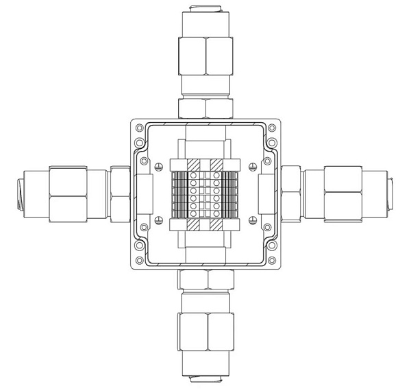 Коробка коммутационная взрывозащищенная 1ExeIIBT5Gb, клеммник 0.5...4 мм.кв. (I=25А) -6 шт, УХЛ1, IP67, t-раб.-60...+85°С, 100х100х81 мм. Корпус из алюминиевого сплава, универсальные кабельные вводы: под кабель 10...16 мм в металлорукаве 20 мм - 4 шт