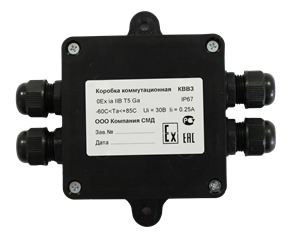 Коробка коммутационная взрывозащищенная, 0ExiaIIBT5Ga; 6-ти парная винтовая клеммная колодка; 4 кабельных ввода MG16 для открытой прокладки присоединяемого кабеля 6...10 мм; IP67, t-раб.-60°...+85°С