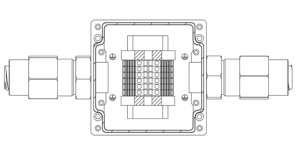 Коробка коммутационная взрывозащищенная 1ExeIIBT5Gb, клеммник 0.5...4 мм.кв. (I=25А) -6 шт, УХЛ1, IP67, t-раб.-60...+85°С, 100х100х81 мм. Корпус из алюминиевого сплава, универсальные кабельные вводы: под кабель 10...16 мм в металлорукаве 20 мм - 2 шт