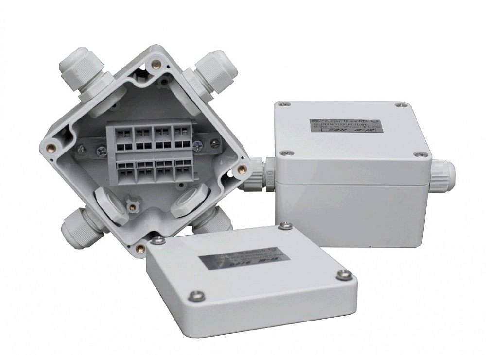 Коробка соед.-разв.взрывозащ.0ExiaIIBT6, искробезопас., 3 каб.ввод, с клемм.колодкой 4х4контакт., IP65, t-раб.-55...+70°C, 128х103х55 мм