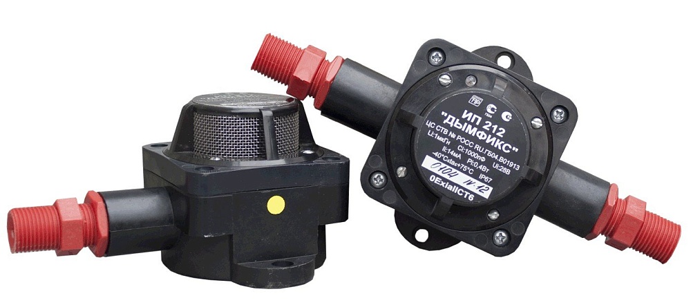 Извещатель пожарный дымовой точечный взрывозащищенный 0ExiaIICT6; 2-х проводный; U-шс.4...27 В, I-деж.100мкА, два ввода; IP67, t-раб.-40...+75°С, 230х110х77 мм. В комплекте два штуцера под трубу 1/2".