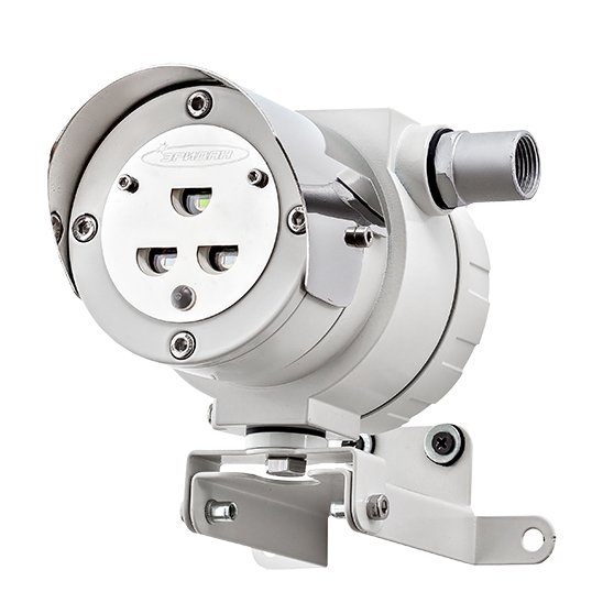 Извещатель пламени взрывозащищенный, 1ExdIICT6GbХ, ИК-диапазон 4,0/4.4/5.0 мкм, дальность обнаружения до 25 м, угол обзора 90°, 4-х проводная схема подключения (НЗ/НР), RS-485 (ModBus RTU), U-пит.8...28 В, I-потр.200 мкА, IP66, t-раб.-60...+55°С, 146х105х110 мм