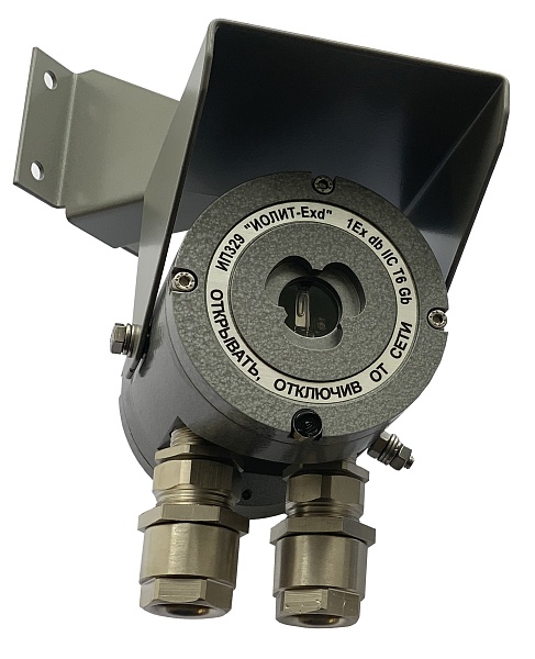 Извещатель пожарный пламени взрывозащищенный 1ExdIIСT6; многодиапазонный ИК+УФ, угол обзора 90°, дальность обнаружения 25 м, t-сраб.15 сек; две схемы подключения, U-пит.5...28 В, I-потр.400 мкА; три режима работы: Дежурный, Пожар, Неисправность, светодиодная индикация; RS-485; два кабельных ввода; IP67, t-раб.-55...+55°С, 230x210x120 мм, 2.0 кг. В комплекте: кронштейн, штуцер для бронированного кабеля и металлорукава до 13 мм, заглушка.